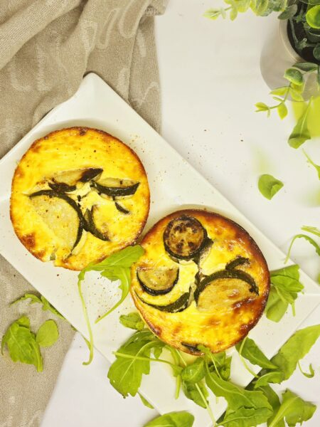 Clafoutis courgettes, chèvre et roquette