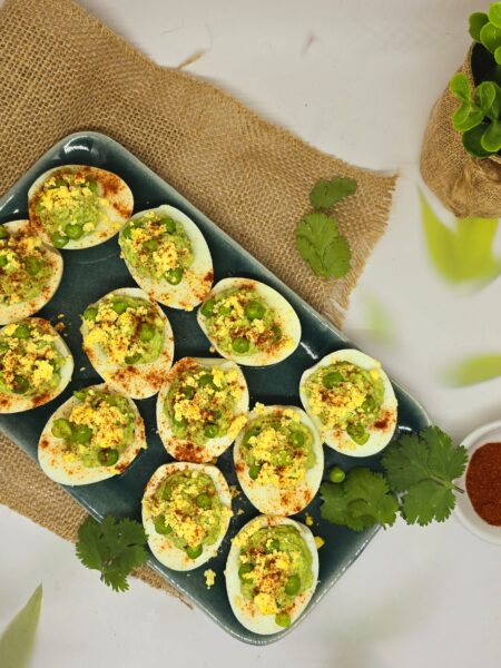 Œufs mimosa au guacamole de petits pois