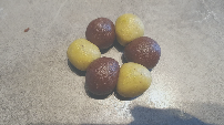 Occupez vous des chutes : Formez des petites boules de chaque pâte de tailles égales et assemblez les en cercles 6 par 6. Rassemblez vers le milieu en tournant légèrement pour donner un bel effet. Laissez reposer une demi-heure au frais.