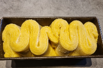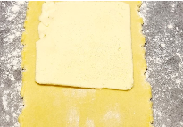 Tournez d'un quart de tour de façon à avoir la soudure à la verticale. Etalez de nouveau en longueur et pliez en deux puis en quatre. Vous avez fait le premier tour double. Filmez et laissez reposer 20 minutes au frais.