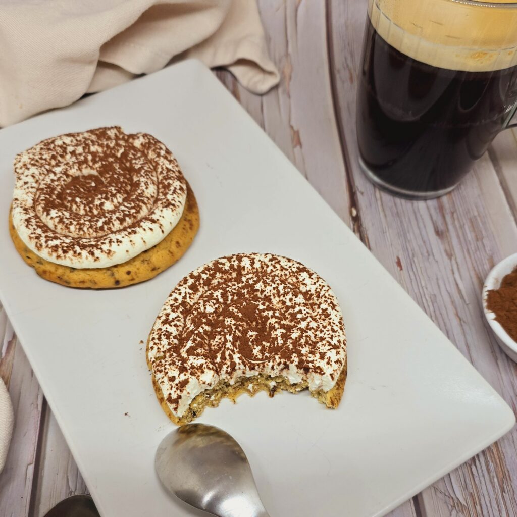 Une touche de crème mascarpone ou de glaçage au mascarpone peut venir compléter ces cookies pour retrouver toute la gourmandise du dessert original.