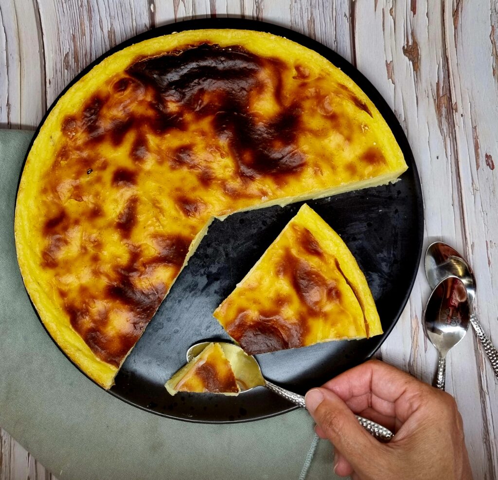 Selon les versions, il peut être préparé avec ou sans pâte. La pâte apporte un contraste croustillant avec la garniture douce et onctueuse, tandis que la version sans pâte met encore plus en valeur la texture du flan.