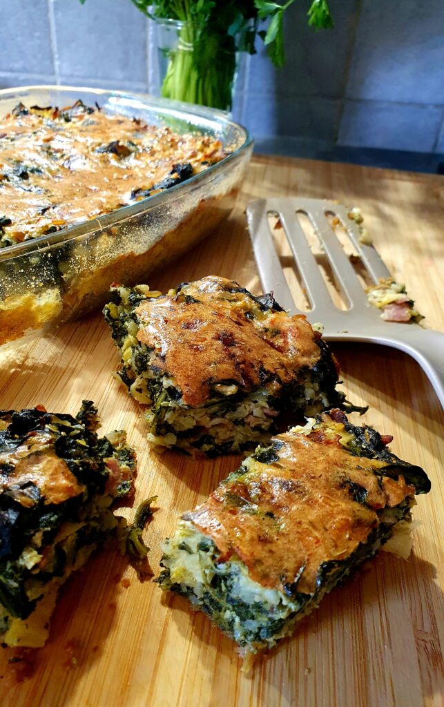 Gâteau de riz aux légumes verts (épinards, poireaux et parmesan)