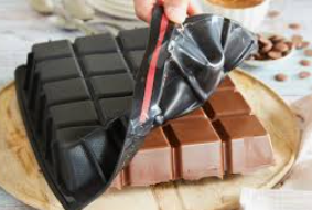 Pochez les dessins des carrés du moule en alternant les goûts et placez au congélateur une dizaine de minutes pour figer le dessin. Puis ajoutez le reste de la pâte en formant des zig zags et en alternant les goûts.