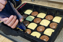 Pochez les dessins des carrés du moule en alternant les goûts et placez au congélateur une dizaine de minutes pour figer le dessin. Puis ajoutez le reste de la pâte en formant des zig zags et en alternant les goûts.