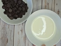 Faites fondre le chocolat au bain-marie. Dans une casserole, portez la crème à ébullition et émulsionnez en 3 fois en versant sur le chocolat fondu. Ajoutez le beurre en petits morceaux et lissez la ganache.